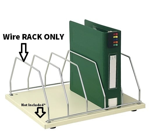 Omnimed table top storage racks are constructed of a with steel wire organizers. Racks can store top or side open binders, chart holders, clipboards and file folders. Organizers have openings of 2 7/8 inches wide and can accommodate binders up to 2 inches. These 5 capacity racks measure 6 7/8H x 16 7/8W x 15D.