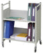 Constructed of welded heavy gauge steel that is powder coated for a durable finish. Its easy grab handles, compact size and smooth glide rubber casters make it the ideal small mobile cart. It has two tilted shelves that keep contents securely in the cart during transport and unobtrusive mobile storage solution. This cart has a 7 year warranty.