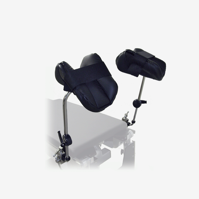 The Knee Crutch Support System consists of two knee crutches, safety straps, and two stainless steel mounting bars. The 360 degree pivot and easily adjustable knee crutch allows for proper patient positioning and maximum comfort.