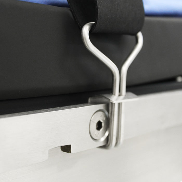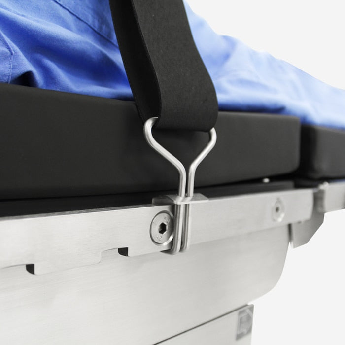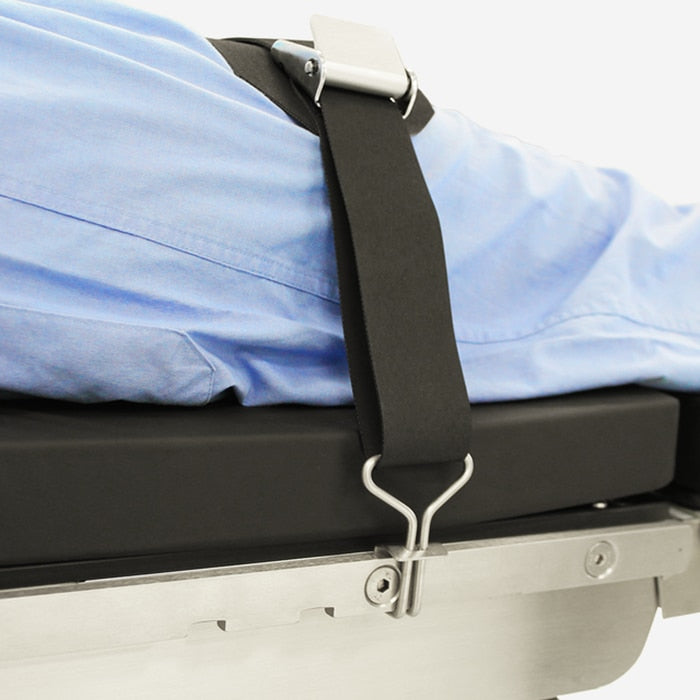 The rubber surgical table patient safety strap is designed to provide secure and safe patient restraint. Mounts directly to the side rails with the use of mounting hooks. (PR-0050 Mounting Hooks included) Patient safety straps are made specifically for the medical industry to help and insure the patients stability and proper positioning. They are used in the surgery room on Surgical Tables, Armboards, or Beds, and also used on stretchers for a safer transfer.
