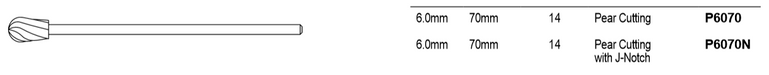 - 6.0mm x 70mm Pear Fluted Bur (14 Flutes)